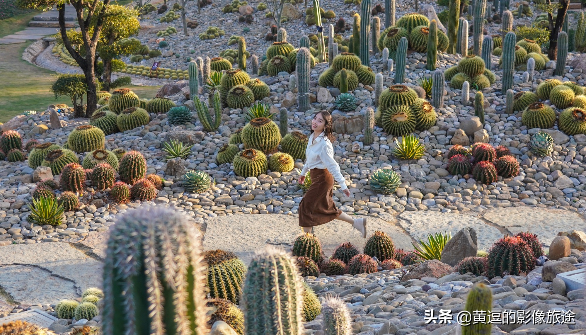 砂石与植被混装而成的“仙人掌森林”,依山势绵延,从山底向上看,小路蜿蜒,山石相携,绿植搭配,似乎比茫茫戈壁的雄奇之景多了几分秀气。