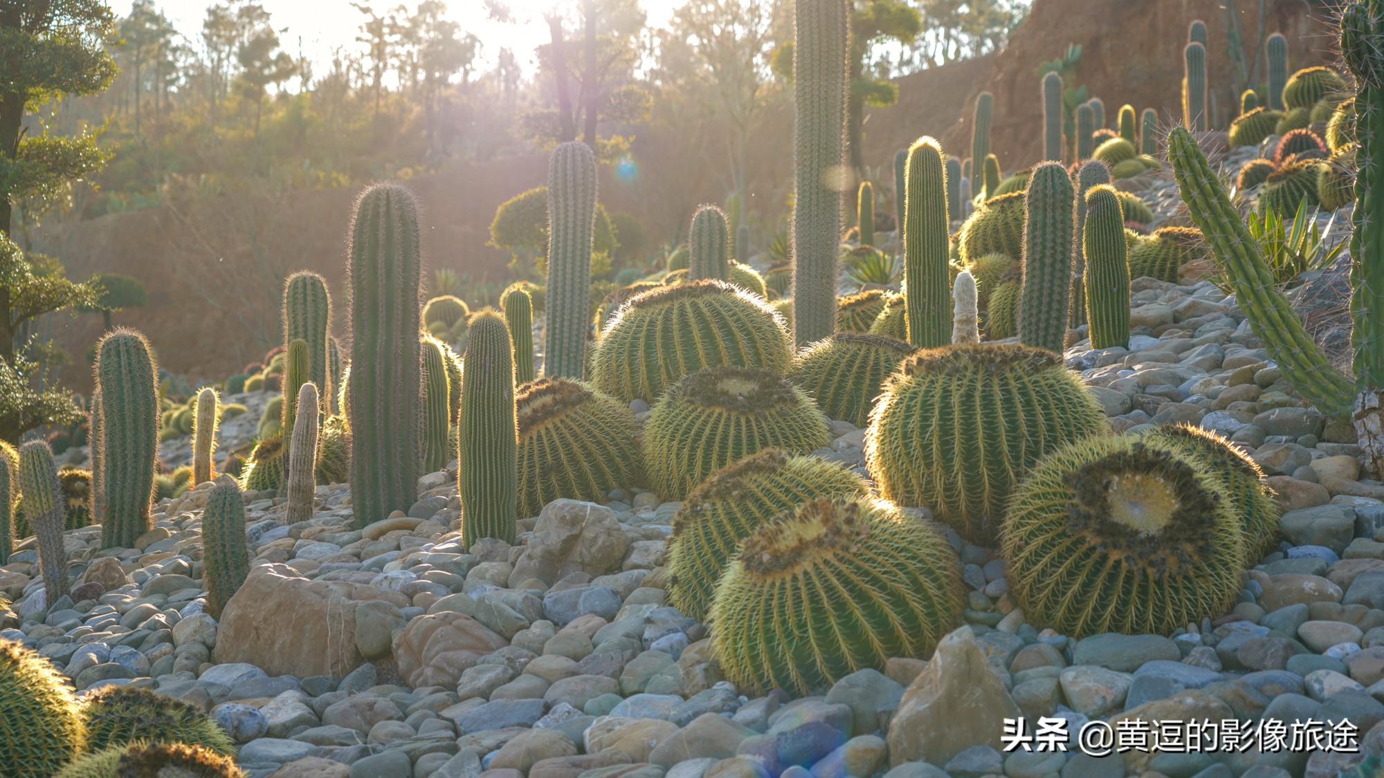 这处“仙人掌森林”地处一处偏坡山地,山地上铺满鹅卵石,鹅卵石缝隙间仙人掌、龙舌兰类等各类石漠化地区植物,形成了令人惊叹的奇特景观。